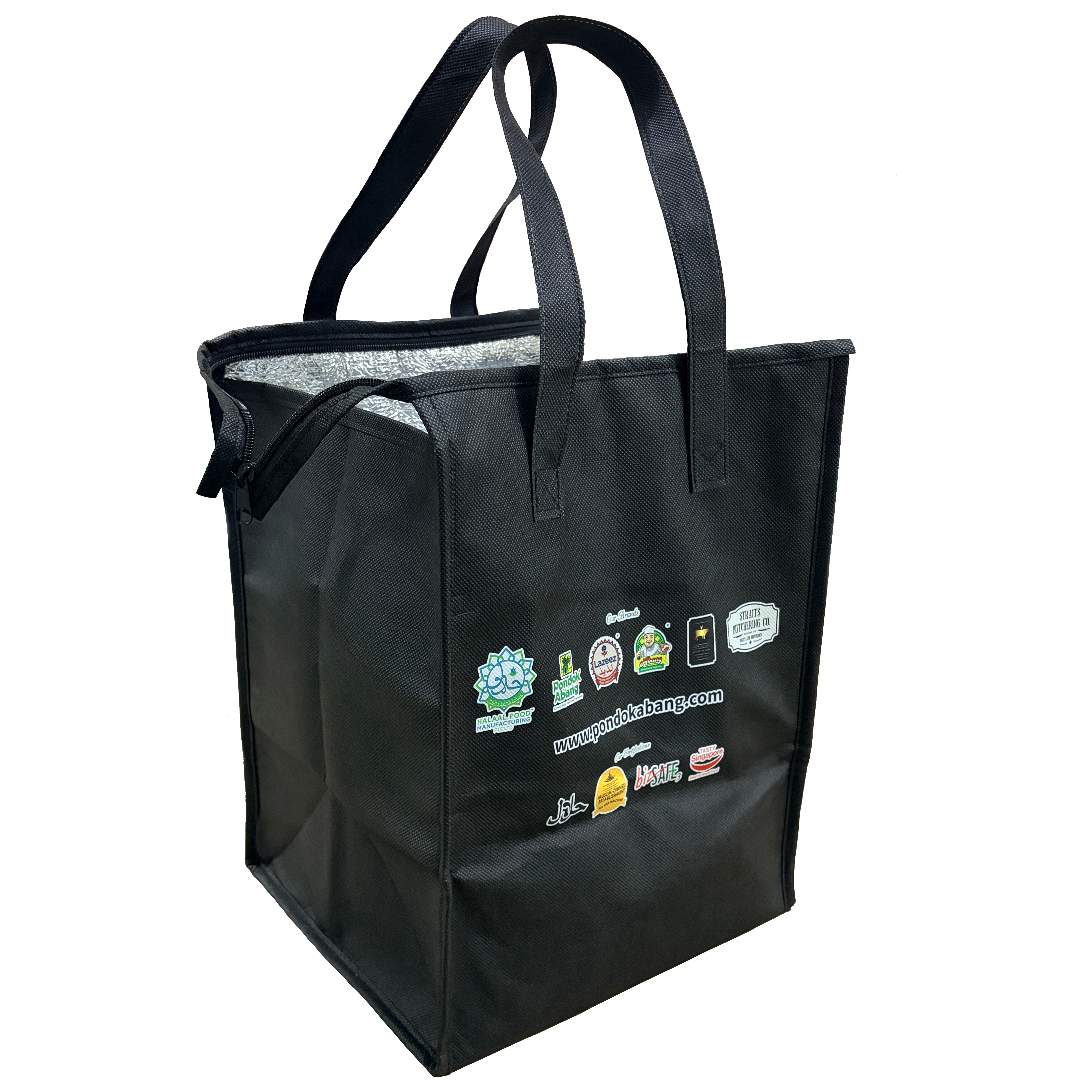 Material: Non-woven material with inner aluminum lining.Dimensions: 36cm (height) x 27cm (width) x 26cm (depth).