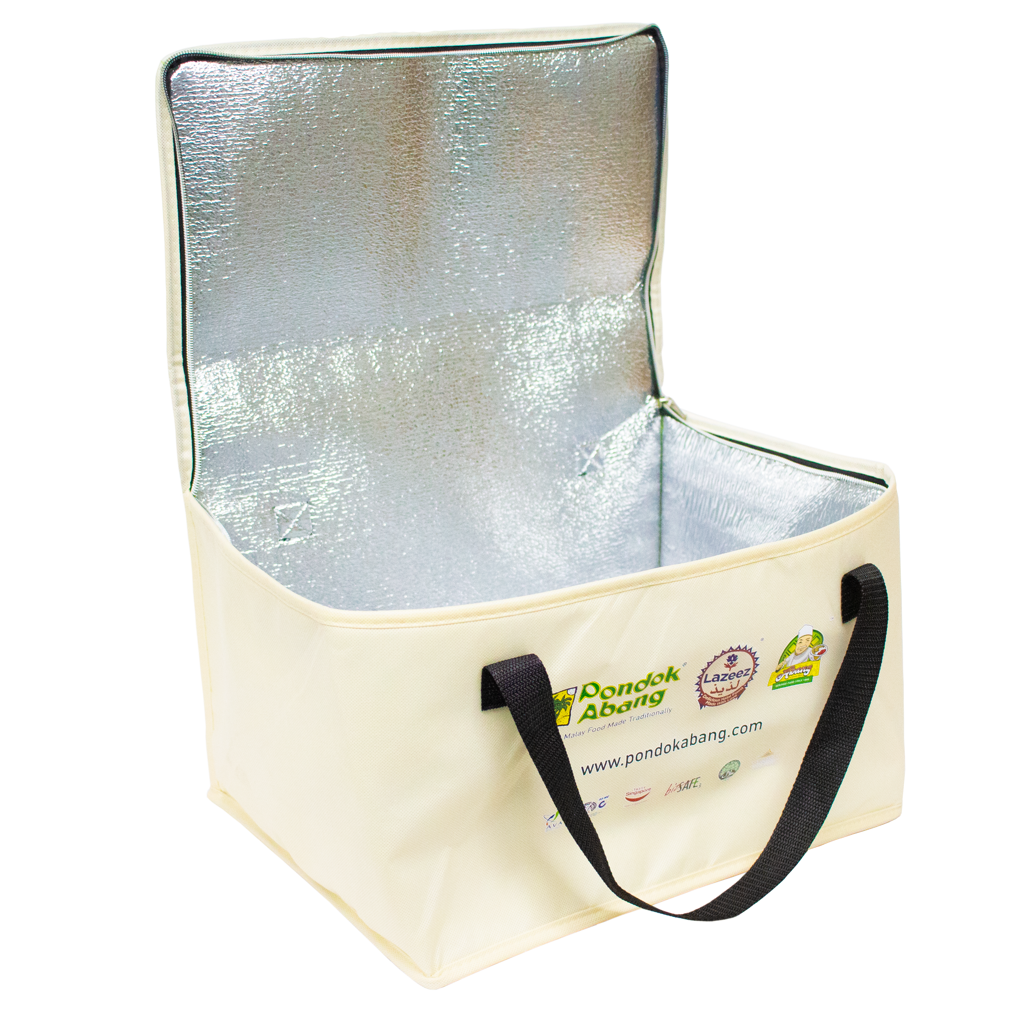 Material: Non-woven material with inner aluminum lining.